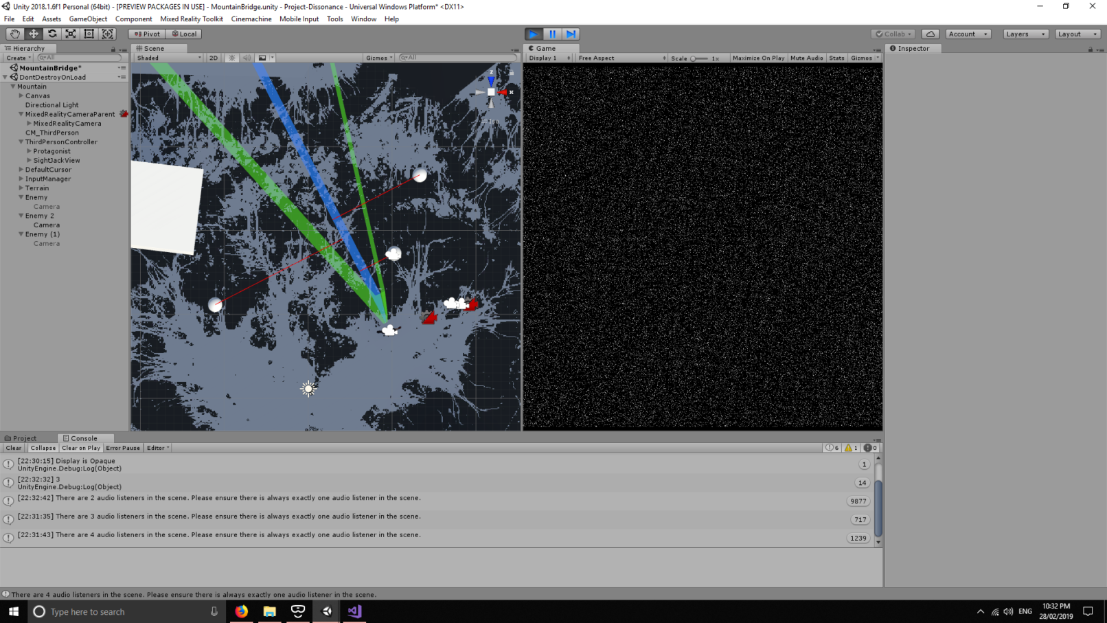 My philosophy for gameplay programming in this project was to think of things both from a designer’s perspective but to consider all of the technical constraints at the same time. I wanted to write code that would directly touch on the game experience such as the ‘sight-jacking’ mechanic featured in the game.